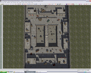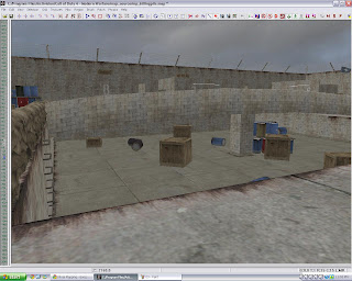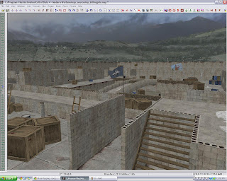 I felt like doing my own version of "mp_killhouse" and gradually it turned out to be a pit in the ground that people had to fight to death in. I picture this as a good map for painball. Its larger than killhouse. There's plenty of buildings to hide in, behind, on and around. Also I added a slightly flooded pit to the middle of the map. The pole holding up the bridge is HOPEFULLY destructible...if I can get the map working properly. Also, the lighting you see is from the editor, NOT the game. Its not done to its best.