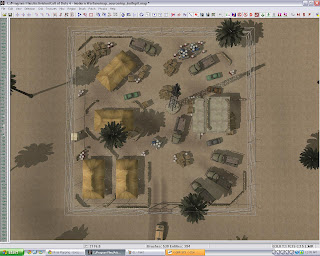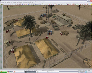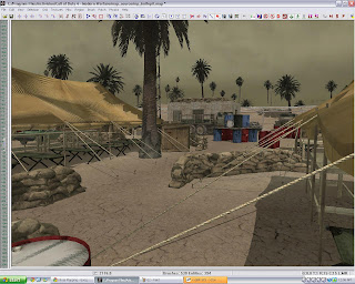 Originally I had named this map "mp_knifepit" but later changed it to "mp_desert_camp" when it started looking like...well...a camp in the desert. The picture with the lamp poles is the most current one. Yes i know the lighting in the editor is bad but ingame it looks better. Also there are a few screw ups like FLOATING PALM TREES in the background that I have to fix. Anywho, I made this map a month or two ago and I'm posting it now.